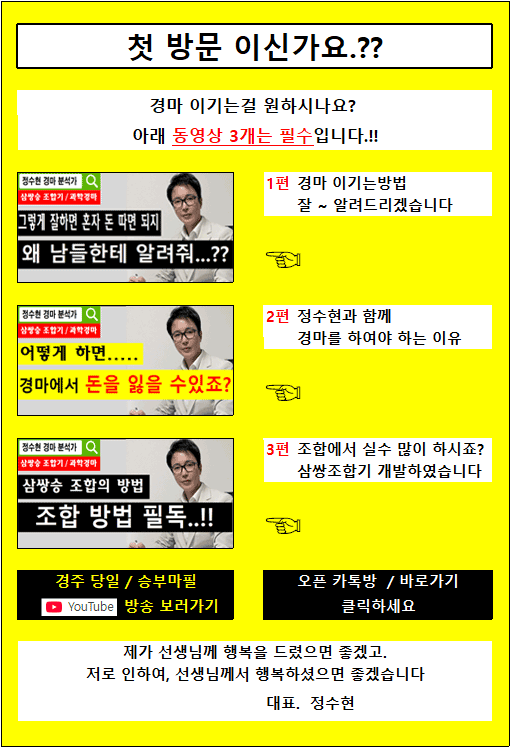 경마 이기는 방법 / 동영상 3개를 계속~~ 반복해서 여러번 시청해 주세요!!