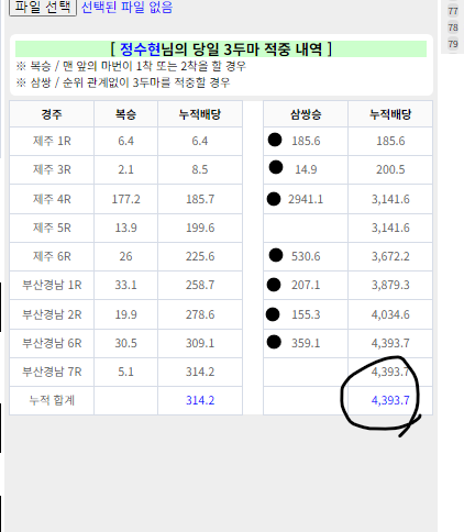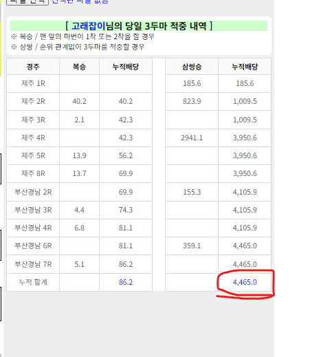 적중하였습니다. 좋은 마번 감사합니다!!