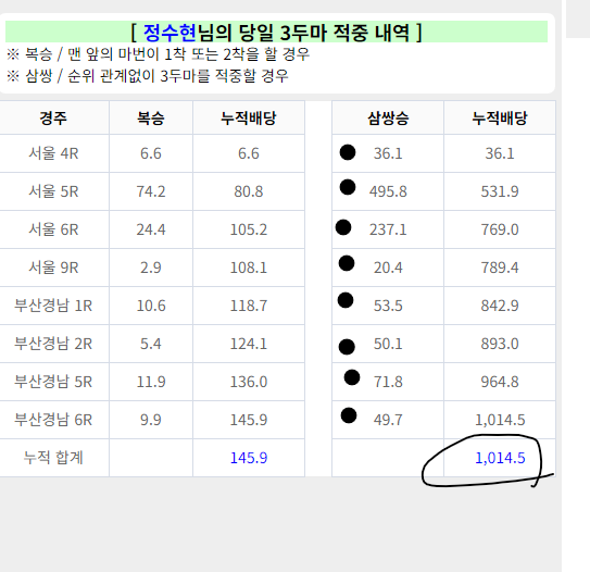 오늘 경마하면서 근래 처음으로 70이겻습니다
