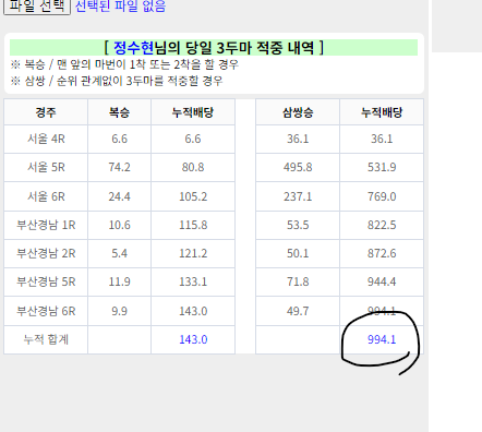 | 정수현 | 나머지 3경주 |